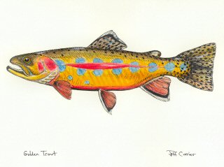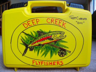 I also managed to catch up on some art projects. I decorated some Cliff fly boxes for Travis Mason of Deep Creek Fly Fishers in California. This is a great club that I’ve spoke at in the past. I know Travis from my visit to the club and ran into him again while at the Pasadena Fly Fishing Show last month. Deep Creek has one of the best looking club hats I’ve seen and Travis generously sent me not only one of the hats but also a club t-shirt. Being in California last month also got me fired up about golden trout so I painted one up this week. I plan to frame him up and hang him in my den until I stock up some of the local art galleries for summer.