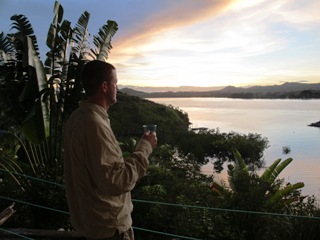 because we don’t want them to kill it, which unfortunately is often the case with locals and snakes. We simply observed the stunning creature until he finally left the walk and disappeared into the thick jungle. Then I went back to our room to close the door! At dinner I asked our camp host Frankie if there were snakes around. He said no and the other helpers chirped in. “No there are no snakes on the island”. I knew this would be their answer. It always is no matter where you go on the planet. All camps, hotels and lodges want their place to be known as “snake free” environments. That’s about when I flipped on my digital camera and showed them some of our pictures and asked them what it was. You should have seen the looks on their faces! Let’s just say there were a few shrieks. There are snakes here and I could tell one dude sees them all the time. In fact he recognized this snake and started telling stories of the cats he’s eaten around camp. Ok, I’m exhausted. It’s been a remarkable first day and I rambled on too long. But that’s traveling in a cool place. Every day is full of surprises.