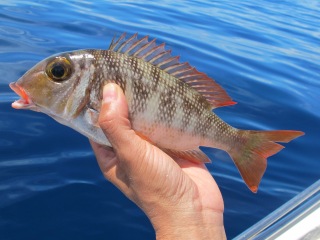 Fishing was flat out slow today. We tried to go way out to sea for a reef George knows about but the weather was a little threatening with wind and dark clouds. So we headed back closer in and went north to where we fished yesterday. The entire way George and his mate dragged two billfish trolling rigs but like yesterday afternoon we didn’t get a strike. Once we got to yesterdays fishing grounds the wind started to calm some and it was quite nice. We drifted a favorite reef several times. I chucked my 12-weight with the 700 grain SA Bluewater Express until my shoulder went numb without a bite. It was so surprising to me I asked George to disassemble one of his trolling rigs and dredge some bait along the bottom. If there were fish down there surely that would catch them, however he only caught three little strange looking fish. The fish just weren’t active.
